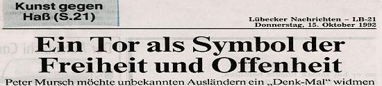 27 Jahren, der Protest gegen Ausländerfeindlichkeit ist immer noch sehr verhalten. Selbst der türkische Teil der Bevölkerung verharrt in einer gewissen Schreckstarre. Statt dessen versucht man das Scheitern des Verfassungsschutzes und die Gewalteskalation der Rechtsextremisten damit zu vernebeln, in dem man ein Konzert besucht, Kerzen anzündet und ein NPD-Verbot forderte. Mit solchen Aktionen beruhigt man zwar vorübergehend sein Gewissen, aber an der Situation als solches wird nichts geändert. Es sei denn, Politiker und Richter kommen endlich aus der Deckung der Bürgerinitiativen und sind bereit, dieser Gefahr ein Ende zu bereiten. Aber vielleicht verlangt man auch zuviel von den Menschen? Nicht jeder hat den Mut zur Zivilcourage! Was bedeutet eigentlich "Zivilcourage"? Hier beziehe ich mich auf das Buch von Gerd Meyer "Lebendige Demokratie". Zivilcourage (oder gleichbedeutend sozialer Mut) ist ein bestimmter Typus sozial verantwortlichen Handelns. Zivilcouragiertes Handeln geschieht in Situationen, in denen zentrale Wertüberzeugungen und soziale Normen (z.B. Menschenwürde, Menschenrechte,Gerechtigkeit, friedlicher Konfliktaustrag unter Bürgern) oder die physische oder psychische Integrität einer Person verletzt werden. Zivilcouragiert handelt, wer bereit ist, trotz drohender Nachteile für die eigene Person, als Einzelner (seltener als Mitglied einer Gruppe) einzutreten für die Wahrung humaner und demokratischer Werte, für die Integrität und die legitimen, kollektiven, primär nicht-materiellen Interessen vor allem anderer Personen, aber auch des Handelnden selbst. Vier zentrale Merkmale unterscheiden Zivilcourage von Hilfe, Altruismus oder Solidarität, von Mut oderTapferkeit allgemein: (1) Es gibt einen latenten oder manifesten Konflikt zwischen denen, die diese Werte und Normen verletzen und denen, die sich für ihre Bewahrung einsetzen. (2) Es gibt nicht immer leicht bestimmbare Risiken, das heißt, der Erfolg zivilcouragierten Handelns ist meist unsicher, und der Handelnde ist bereit, Nachteile in Kauf zu nehmen. (3) Zivilcouragiertes Handeln ist öffentlich, d.h. in der Regel sind mehr als zwei Personen anwesend. (4) Es gibt ein reales oder subjektiv wahrgenommenes Machtungleichgewicht zu Ungunsten dessen, der mutig handeln will, etwa weil er sich in einer Minderheits-/Mehrheitssituation in Gruppen oder in einem Verhältnis der Über-/Unterordnung bzw. einer Abhängigkeit befindet (die oft mit Anpassungsdruck verbunden sind).Gerd Meyer unterscheidet drei Arten des Handelns mit Zivilcourage: (1) Eingreifen zugunsten anderer, meist in unvorhergesehenen Situationen, in denen man schnell entscheiden muss, was man tut. (2) Sich-Einsetzen – meist ohne akuten Handlungsdruck – für allgemeine Werte, für das Recht oder die legitimen Interessen anderer, vor allem in organisierten Kontexten und Institutionen, wie z.B. in der Schule oder am Arbeitsplatz. (3) Sich-Wehren z.B. gegen körperliche Angriffe, Mobbing oder Ungerechtigkeit; zu sich und seinen Überzeugungen stehen, standhalten, sich behaupten; widerstehen, nein sagen, 'aus guten Gründen' den Gehorsam verweigern." (Gerd Meyer et. al: Zivilcourage lernen 2. Aufl. 2007, überarb. 2011) Dies erfordert Mut, da derjenige, der Zivilcourage zeigt, möglicherweise mit Sanktionen durch Autoritäten, Vertreter der herrschenden Meinung oder sein soziales Umfeld (z.B. einer Gruppenmehrheit) zu rechnen hat. Einige dieser Tatsachen waren mir bekannt, mit anderen habe ich nicht gerechnet. Z.B. mit der am Telefon ausgesprochenen Drohung: "Du dummes Judenschwein, wir zünden dir dein Haus an, wenn du nicht mit dem Denkmal für Ausländer aufhörst!" Nach dieser Drohung war leider keine Seite bereit, mir zu helfen. Im Gegenteil, einer der Kommunalpolitiker sagte darauf hin zu mir: "Sie sollten wieder das machen, was Sie eigentlich sind, Künstler. Ein Künstler schafft Kunstwerke, Plastiken, Bilder, irgend etwas, das die menschliche Seele erhebt. Sie dürfen sich nicht wundern, wenn man Sie bedroht, wer sich so weit aus dem Fenster lehnt, muss schon mal damit rechnen..." Fazit: Da standen wir nun mit unseren Ängsten, mit Hilfe und Unterstützung war nicht mehr zu rechnen. Aus heutiger Sicht würde ich nicht mehr so naiv an ein Projekt heran gehen, sondern vieles anders machen.